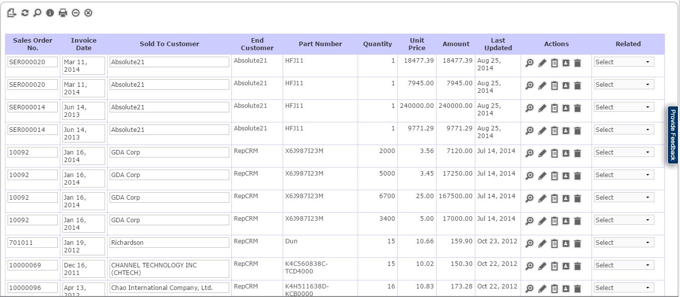 Sales History Grid View